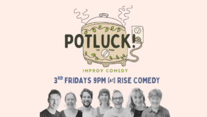 Welcome to Potluck! — the only dinner party where the secrets are spicier than the Crock-Pot side dishes. In this bold and unpredictable long-form improv show, each performer receives a real, anonymous secret from the audience at the top of the show. These secrets—funny, weird, or wildly personal—become the hidden truths that drive each character. One character hosts the potluck, and one by one, the guests arrive with a dish in hand and emotional baggage tucked just beneath the surface. This month’s show will be set at a Graduation Party Potluck – see you there.